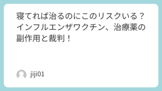 未分類 寝てれば治るのにこのリスクいる?インフルエンザワクチン、治療薬の副作用と裁判! インフルエンザの薬とワクチン、副作用が心配な方へ【裁判例も解説】毎年冬になると流行するインフルエンザ。高熱や関節痛など、つらい症状に悩まされた経験がある方も多いのではないでしょうか。そんな時、頼りになるのがインフルエンザ治療薬やワクチンとさ... 2026.01.10 未分類